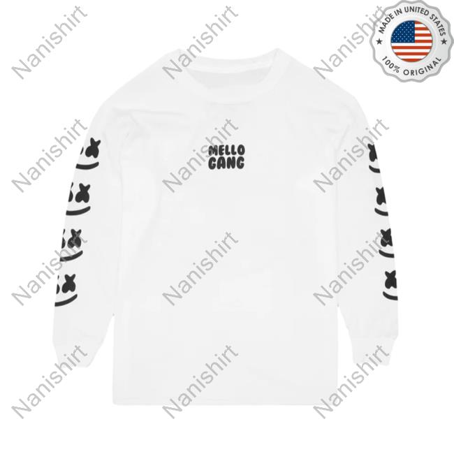 Official Marshmello Music Clothing Store Shop Mellogang Faces L/S Crewneck White Marshmellomusic Merch